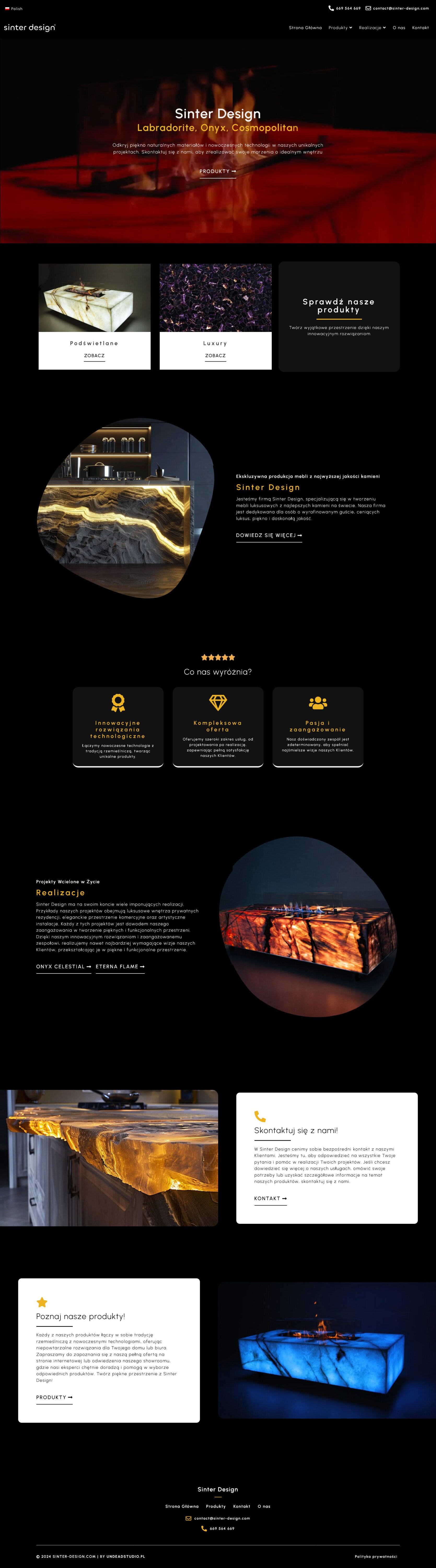 A website for Sinter Design, a company specializing in producing luxury furniture from the finest stones. The website’s design reflects the elegance and refined taste of the brand, showcasing high-quality, unique products for demanding customers who value luxury, functionality, and design excellence.