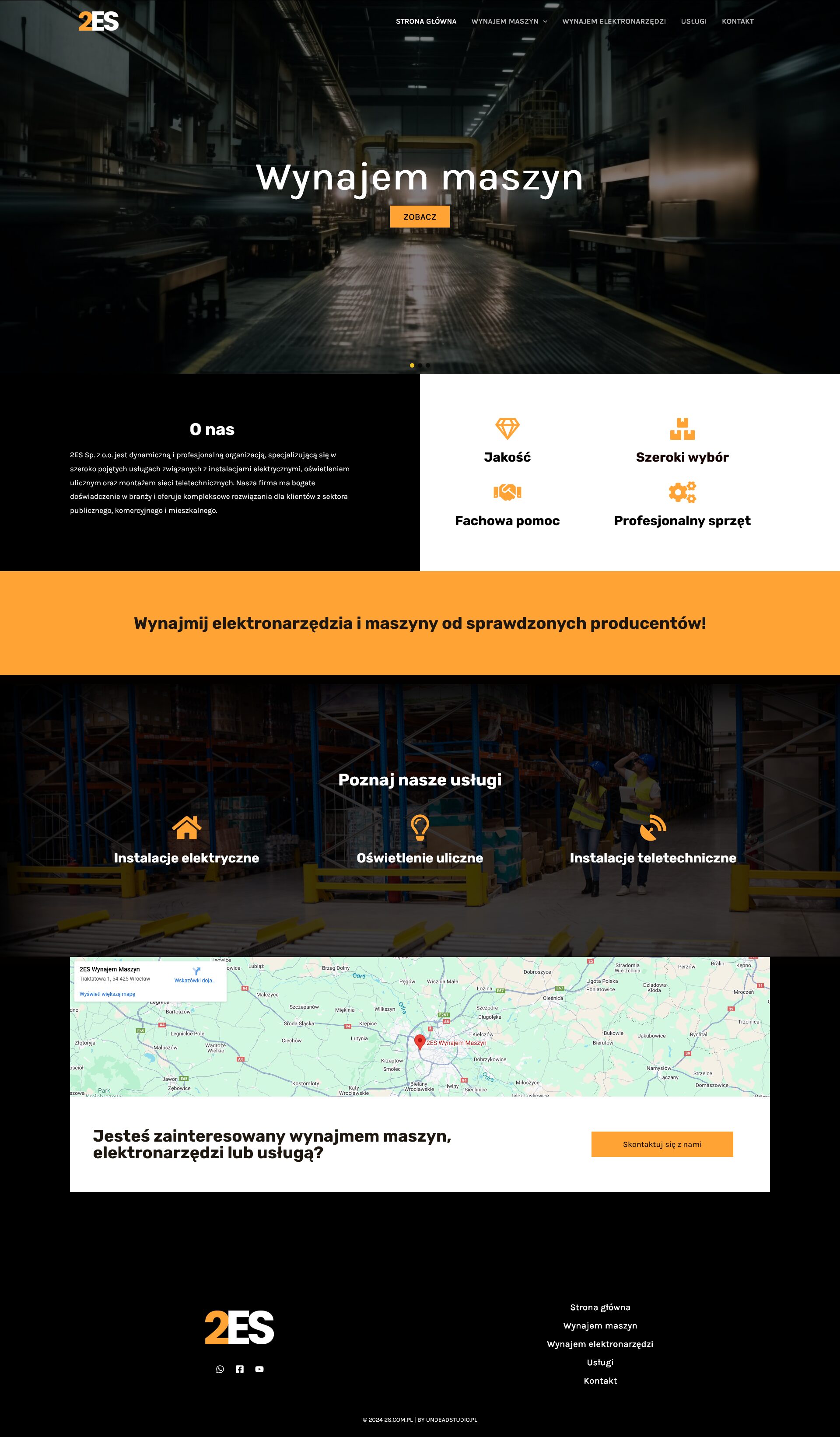 A website for 2ES Sp. z o.o., a company specializing in electrical installations, street lighting, and telecommunication networks. The website highlights the professionalism of the company and its broad service offering targeted at public, commercial, and residential sectors, providing comprehensive solutions.