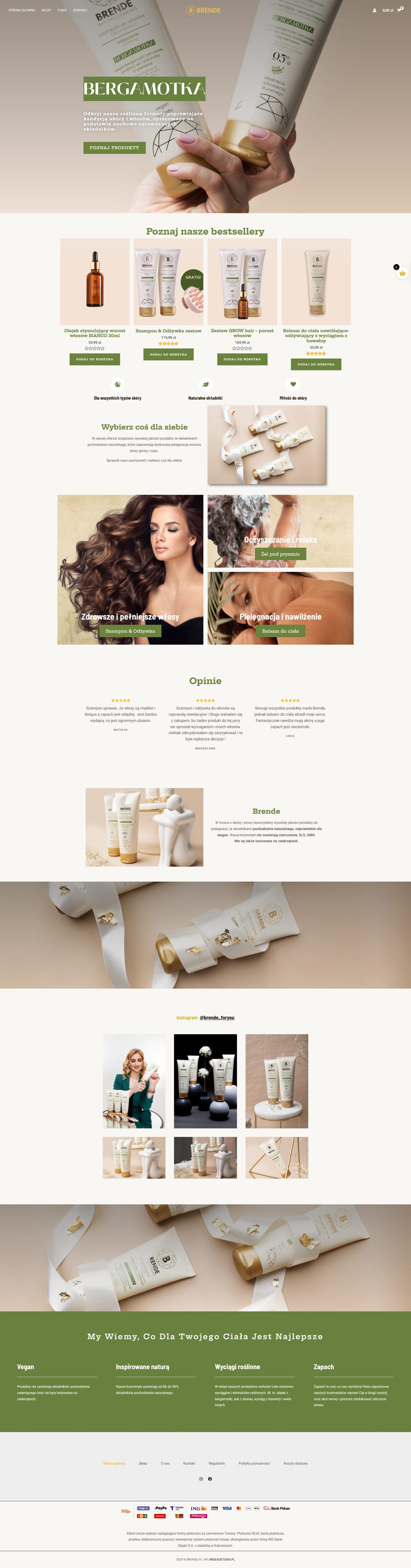 A website for a brand offering natural skincare and haircare products suitable for vegans. The online store features a simple and aesthetic design, making it easy for customers to access products made with a focus on health and beauty, combining high quality with natural ingredients.