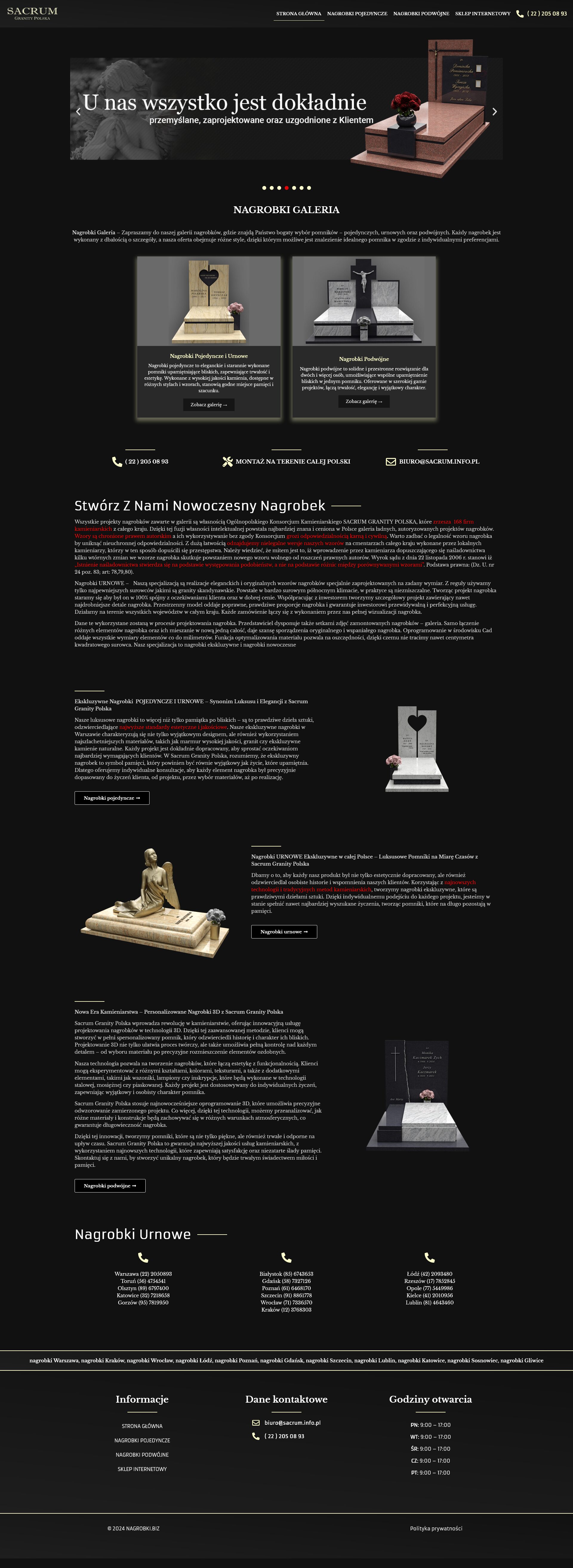 A website showcasing an offer of tombstones – from single to double ones, in various styles. The site offers users a rich selection of monuments, crafted with attention to detail, providing easy access to information and a full range of products in various variants to meet individual preferences.