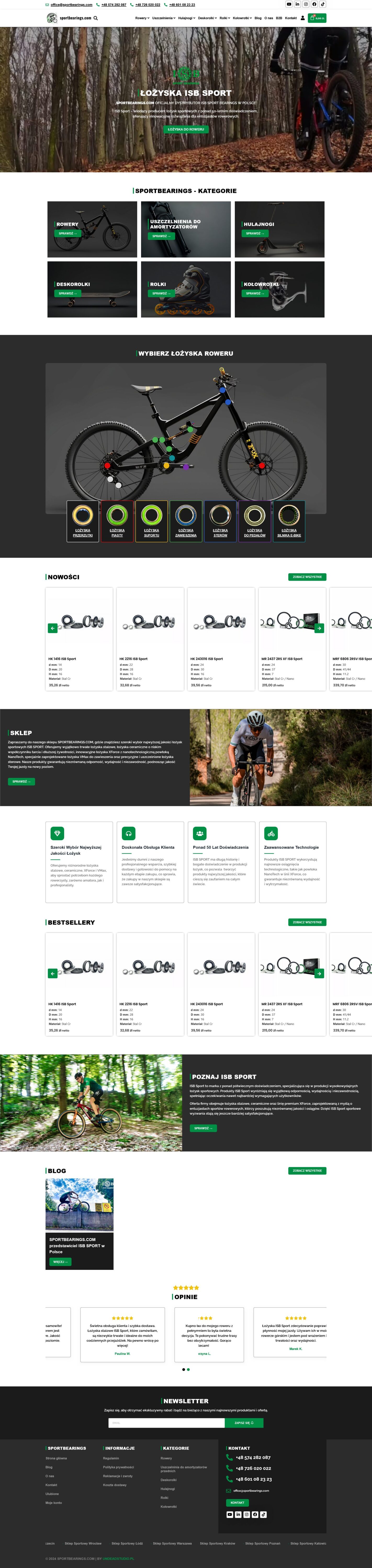 An online store offering a wide selection of high-quality ISB SPORT bearings. The site features products like steel bearings, ceramic bearings, XForce with a nanotech coating, and VMax suspension bearings, ensuring unmatched durability and performance, ideal for athletes and enthusiasts of extreme sports.