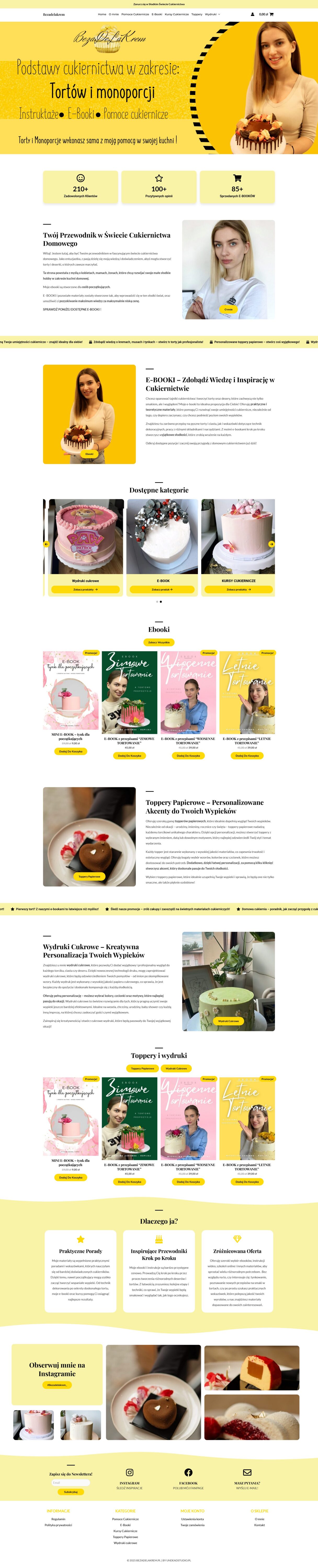 A website dedicated to home baking enthusiasts. The author shares her knowledge, offering e-books and materials for beginners that help create delicious cakes and desserts. The site is aimed at women, mothers, and wives who want to develop their culinary hobby at home.
