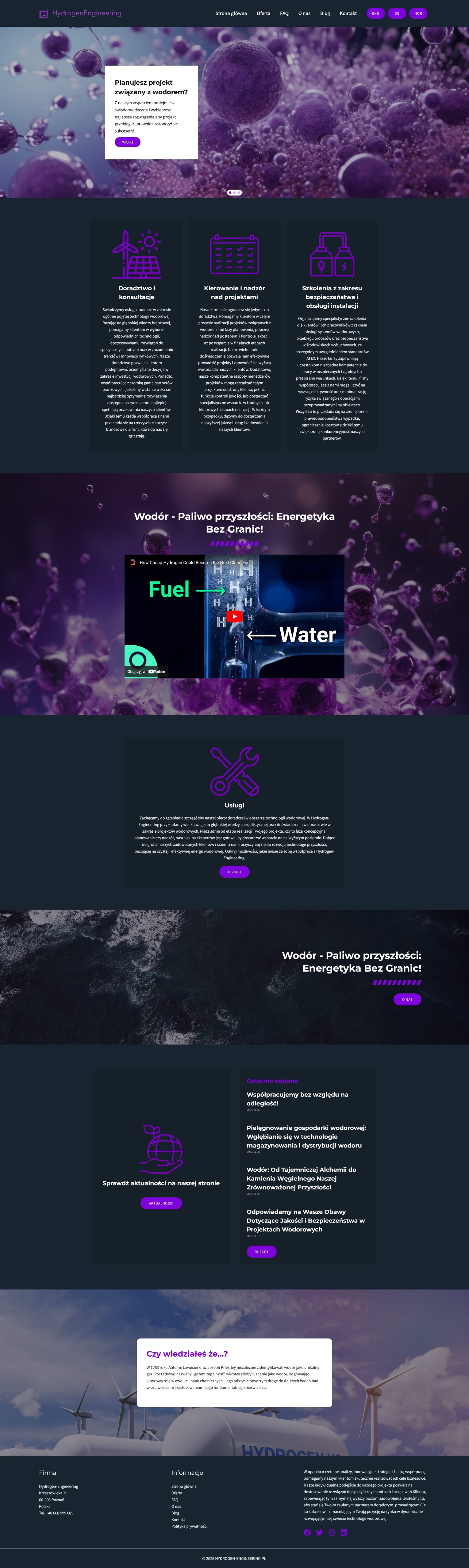 Hydrogen Engineering is a consulting company specializing in hydrogen technology. The website presents an offer of consulting services for hydrogen projects, from conceptual stages to execution supervision. Experts offer support at every stage, helping companies develop eco-friendly technologies based on hydrogen energy.