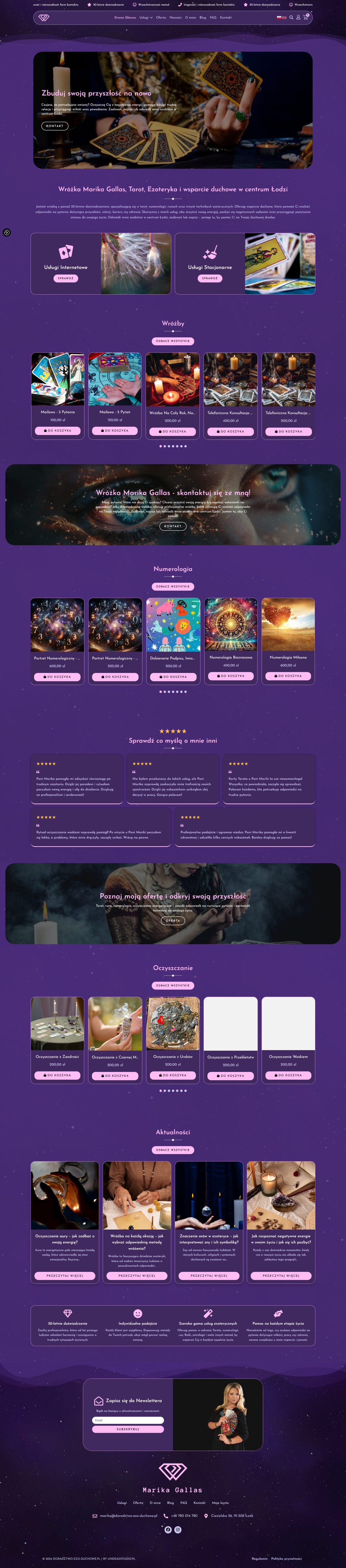 A website for a fortune teller with over 30 years of experience, specializing in tarot, numerology, and other esoteric techniques. Users can use her spiritual services to receive guidance on issues of the future, relationships, career, and health. The site stands out for its personal approach and is the ideal place for those seeking positive changes in their life.